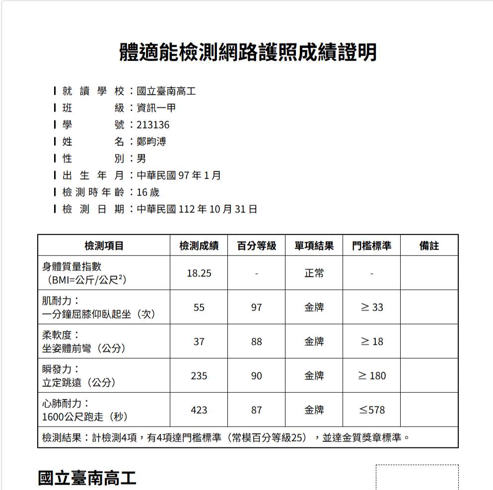I'm interested in CyberSecurity, especially Red Team and penetration testing. 平時喜歡游泳,體適能金牌*4。